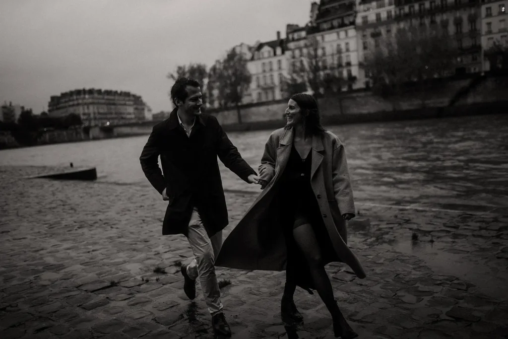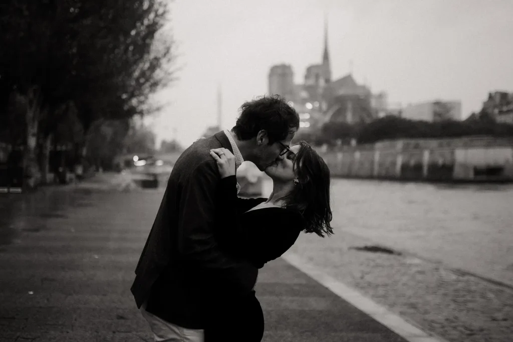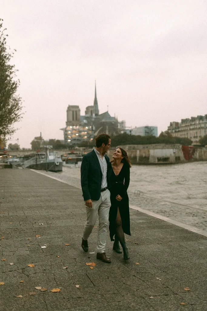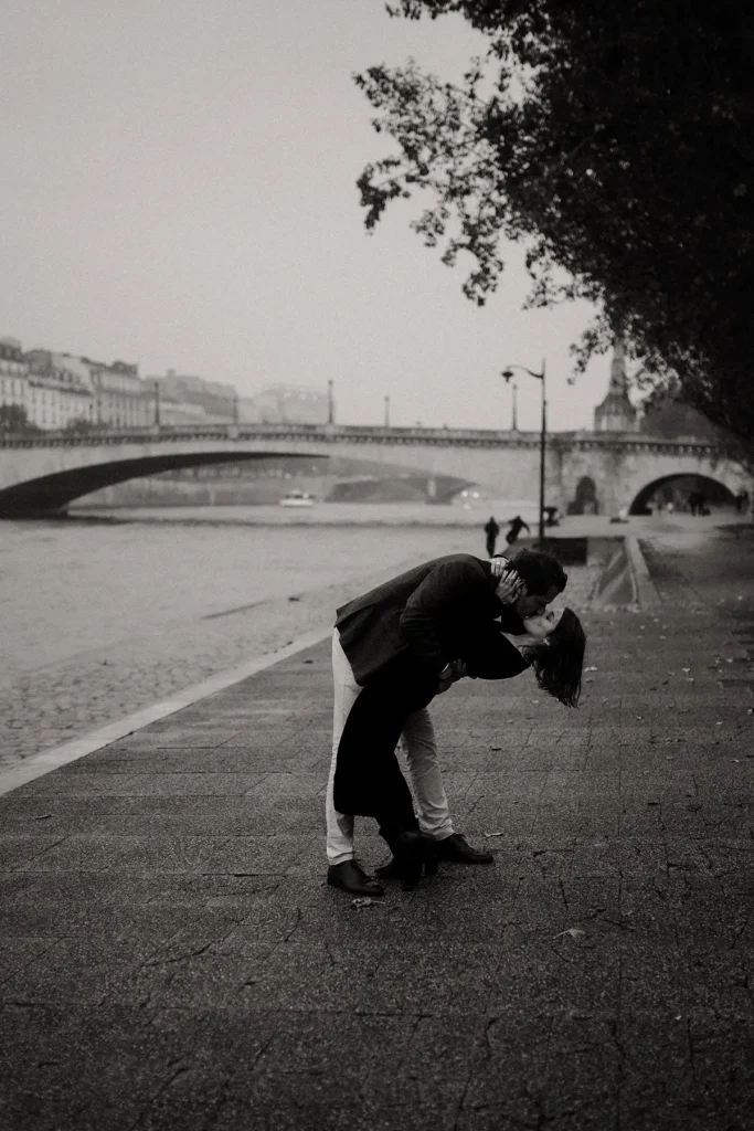Ce que j’ai adoré lors de cette séance d’engagement à l’Île de la Cité, c’est la possibilité de créer des images puissantes et intemporelles au coeur de l’Ile de la Cité, sur les quais. L’atmosphère parisienne est assumée et ce couple a foulé des pavés historiques pour garder des souvenirs impérissables de ce moment, et de leur quotidien à Paris. Dans une ambiance digne d’un film, ils m’ont fait confiance pour photographier leur amour dans un décor emblématique de la capitale.