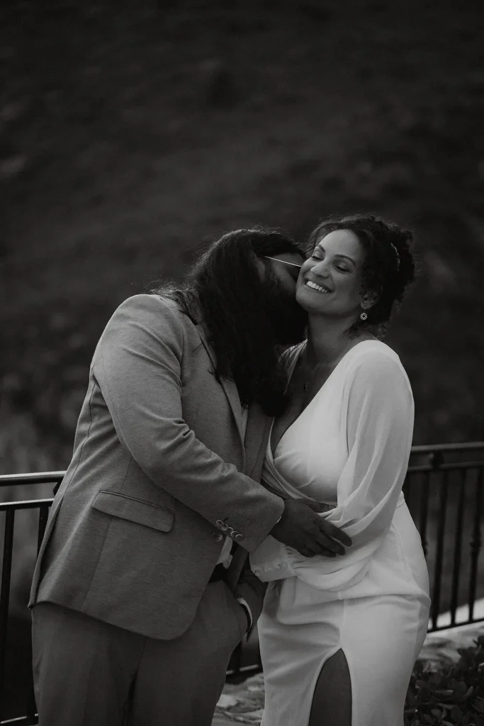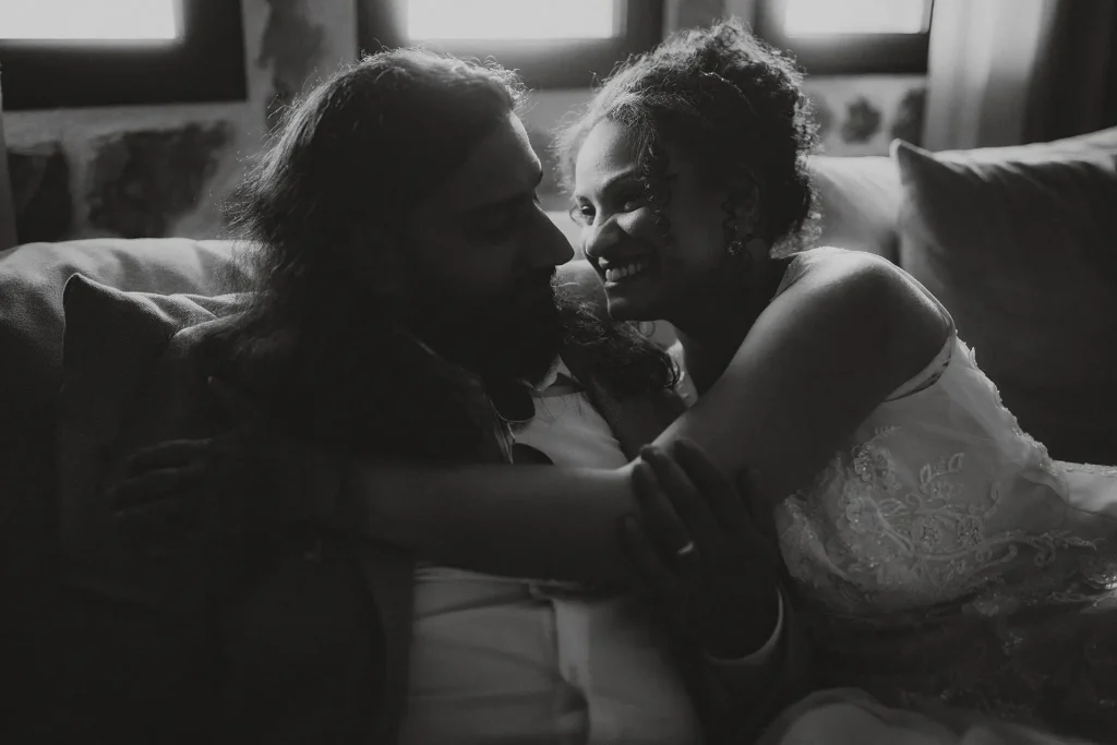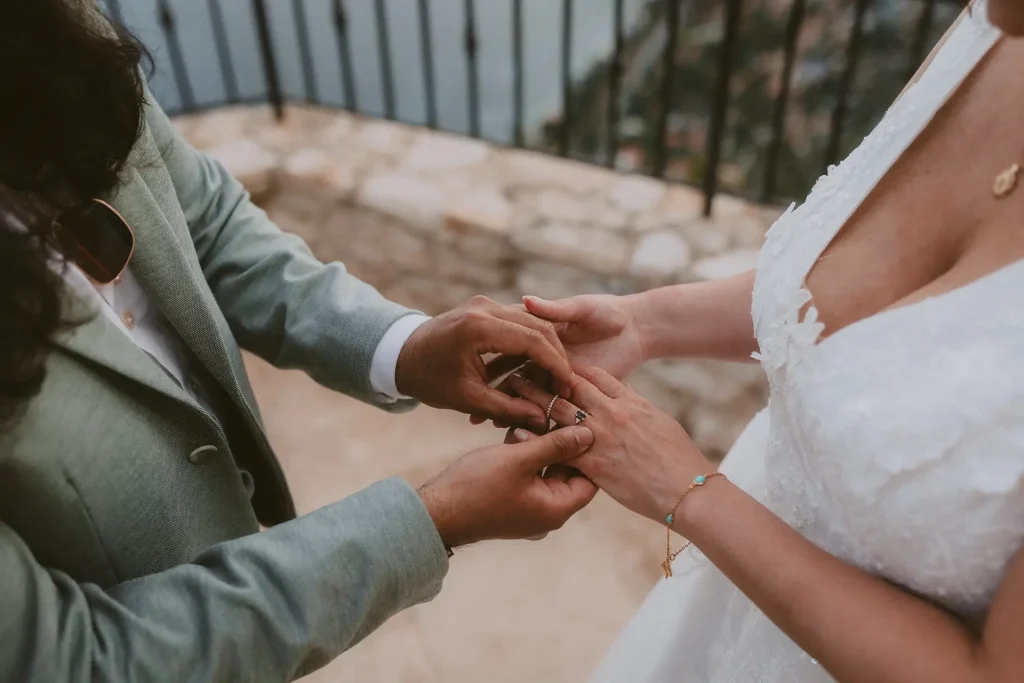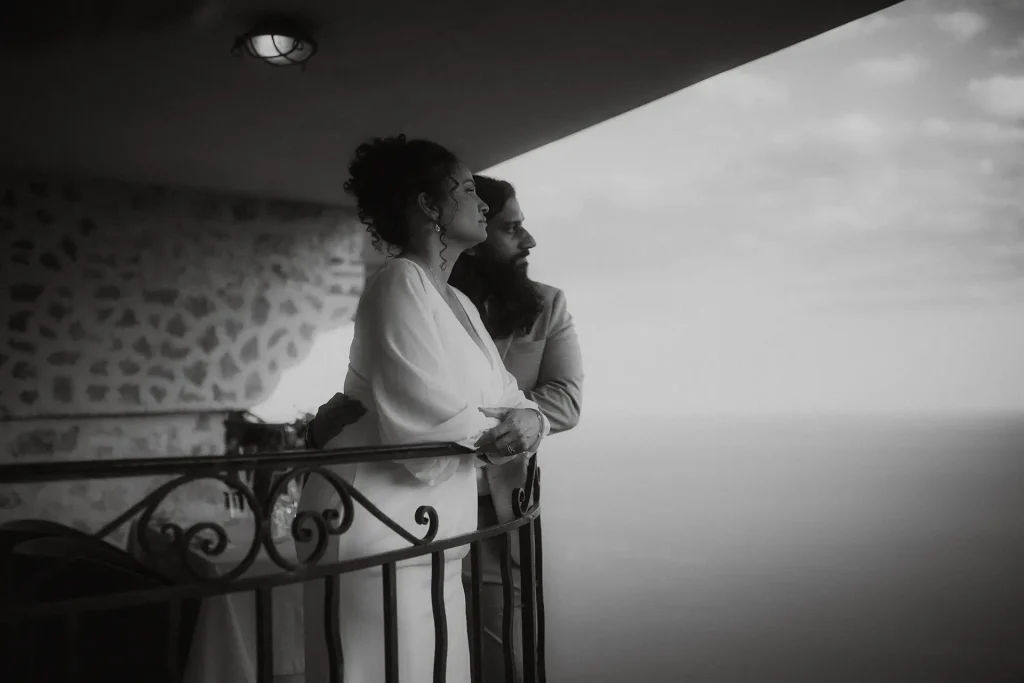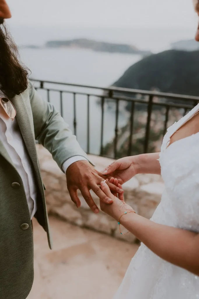 Ce couple sud-américain et indien réside au Canada. Ils ont choisi de s’enfuir sur la French Riviera, le temps de leur élopement à Eze. Leur programme ? Un savant mélange d’hotel de luxe, de dîner étoilé et de road-trip sur les petites routes de la Côte d’aAzur ! C’est a Eze qu’ils logeaient, dans la suite panoramique de l’hotel Eza. Je les y ai rejoins pour quelques photos de leurs préparatifs, en toute détente, dans cette incroyable suite. Puis, nous avons déambulé dans les superbes petites ruelles du village pour quelques photos de couple. De retour à l’hotel, il était l’heure de leur cérémonie informelle. Ce couple avait imaginé un émouvant échange de voeux sur la terrasse panoramique de l’hotel Eza, avec une vue sur la baie de Beaulieu. Pour finir, je les ai accompagnés pour immortaliser un dîner en tête à tête dans le restaurant étoilé de l’hotel, avec balcon privatisé, le regarde posé sur cette étendue d’Azur.