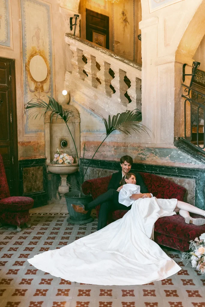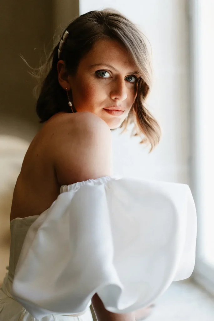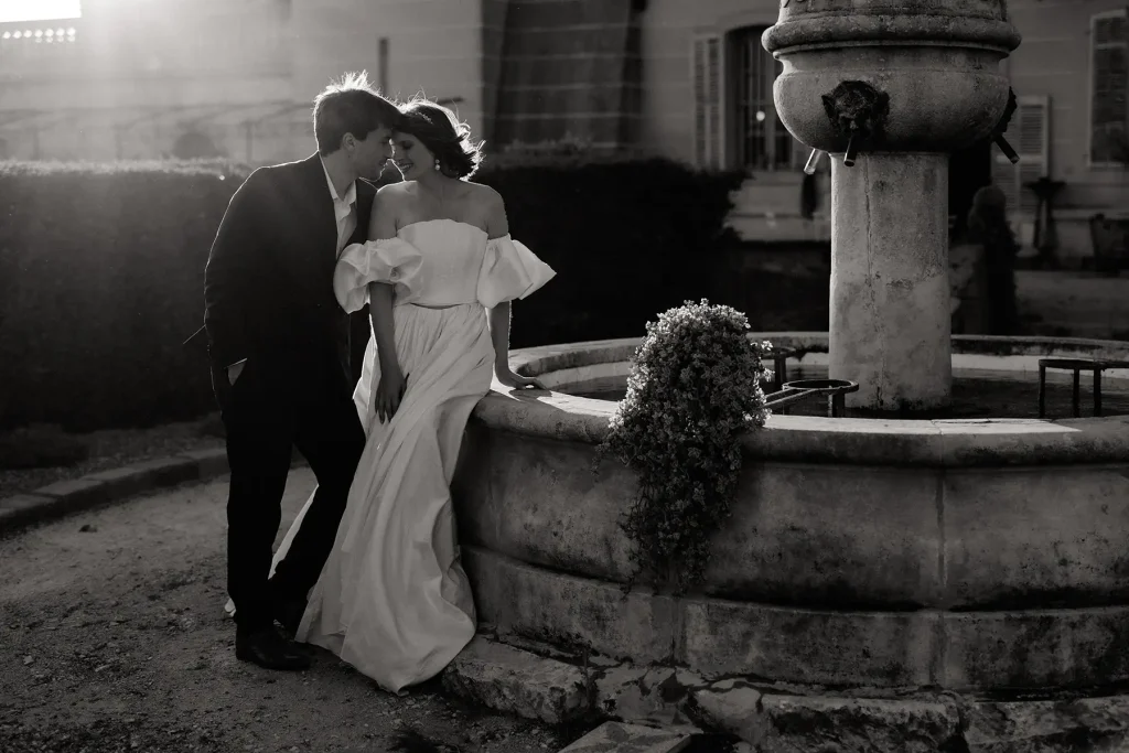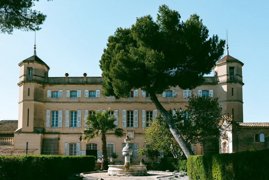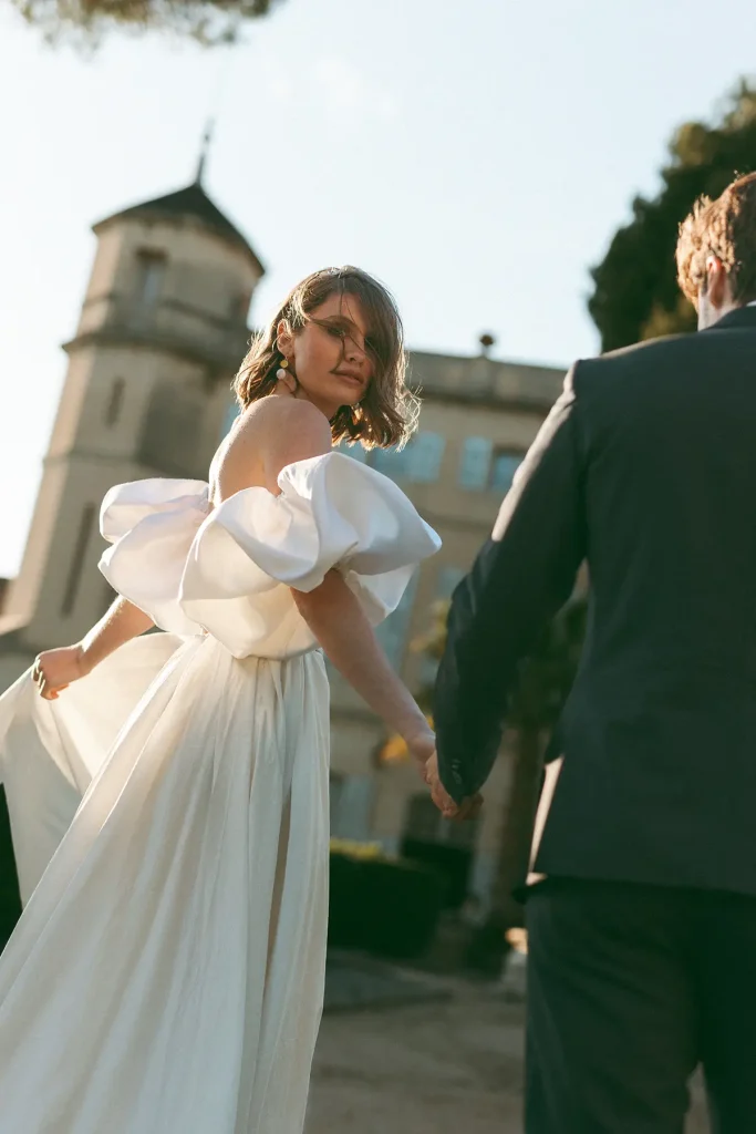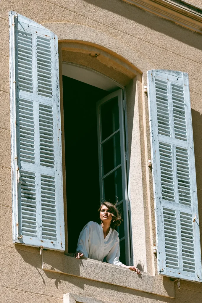 Le choix du lieu a été le point de départ créatif de ce shooting inspiration mariage edito au Chateau de Sénéguier. Pour cela, nous avons imaginé une scénographie minimaliste où chaque élément trouve sa place avec justesse. Pas de blanc monochrome, mais une esthétique pensée comme un hommage au cinéma d’après-guerre, à cette Provence intemporelle qui m’est chère. Une modernité sans clichés, où tout n’est qu’une question de nuances. Photographe de mariage au Chateau de Sénéguier, c’était pour moi une magnifique opportunité de capturer sa rugosité brute, son architecture marquée par le temps (il d’agit d’un patrimoine historique !) d’un lieu si imposant.