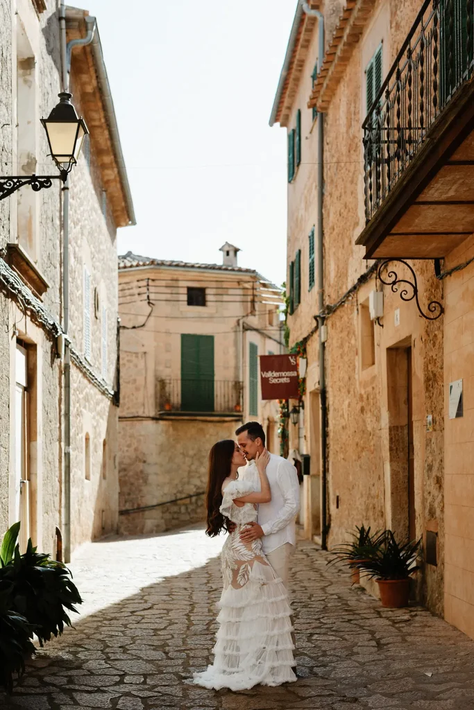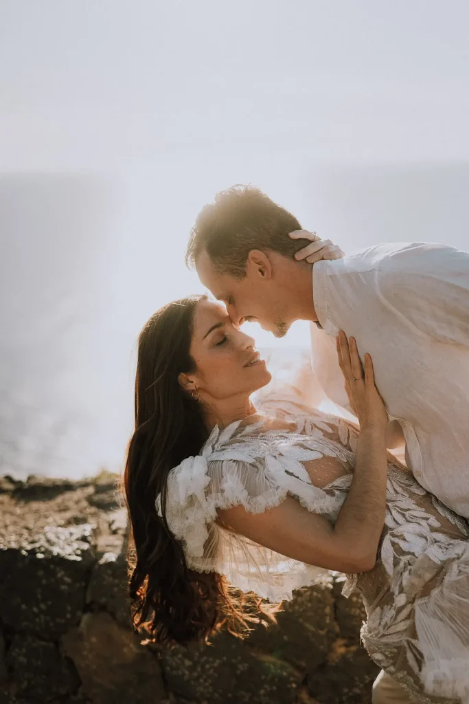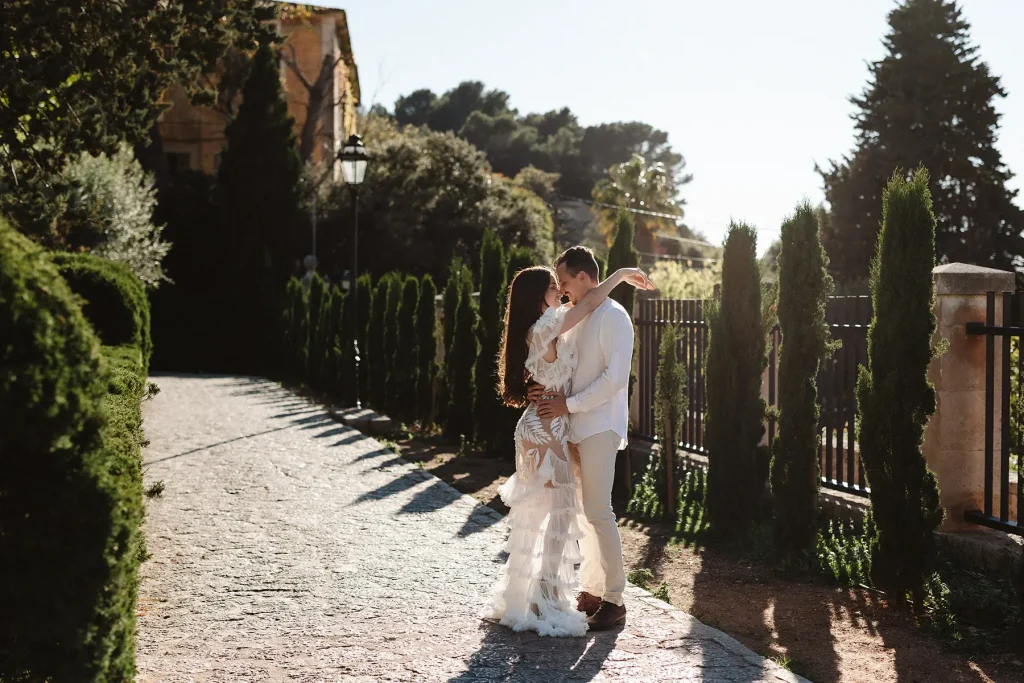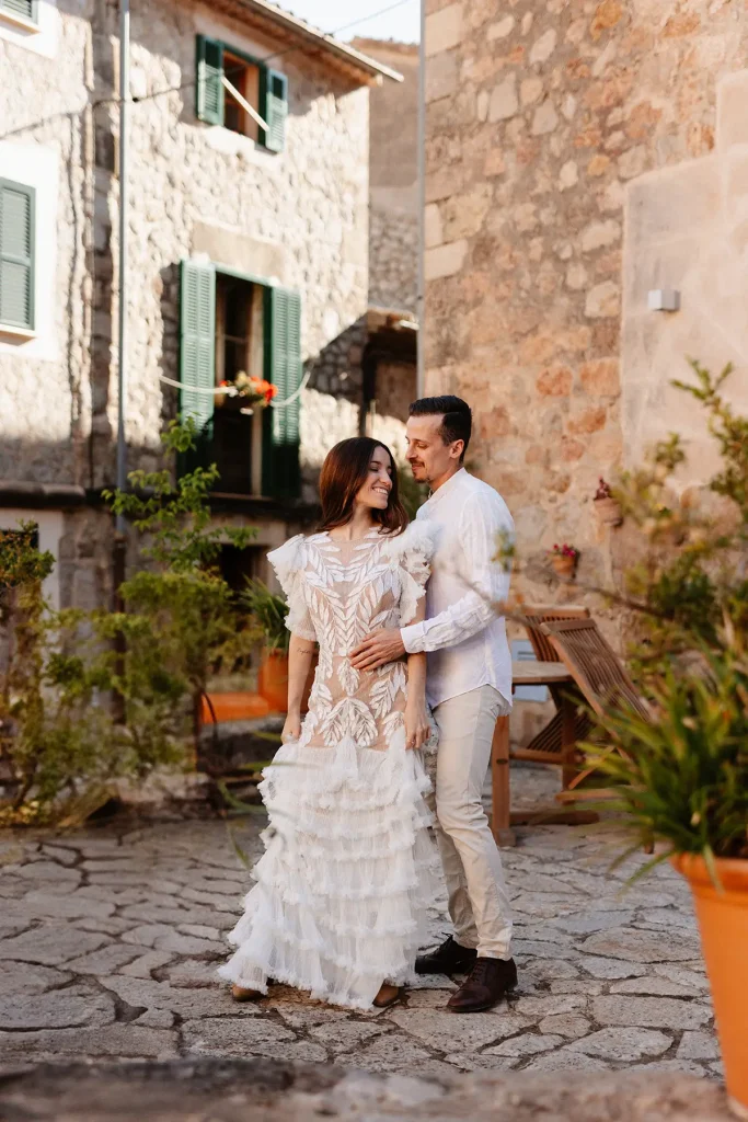 J’avais à coeur également de mettre en valeur un couple de majorquins ancré dans leur territoire. Eux, mieux que personne, peuvent restranscrire l’ambiance et l’atmosphère poétique et solaire de cette île. L’idée du voyage et de la liberté est très forte dans mon travail, ce sont des valeurs que je met fortement en avant et qui me semblent essentielles, dans le mariage comme dans la vie. Ainsi, ce shooting inspiration mariage à Majorque résonne volontairement avec ces idéaux. Le mariage est une aventure, la liberté est essentielle et le voyage crée le bonheur. Photographe de mariage à Majorque, j’espère que ces mots résonneront en vous et je suis prête à vous accompagner dans les Baléares pour votre mariage.