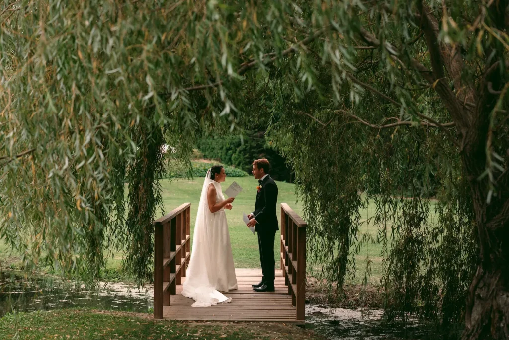 Malheureusement ce jour là nous n’avons pas pu diner en extérieur à cause de la météo. Cependant, la pluie nous a épargné tant qu’il faisait jour. Ainsi, nous avons pu profiter d’un long cocktail en extérieur, près du lac, où j’ai rpis le temps de faire beaucoup de photos avec le couple de jeunes mariés et les témoins. Les mariés souhaitaient également des souvenirs photos lorsqu’ils ont échangé leur voeux sous le saule pleureur qui domaine le lac. J’ai trouvé que le domaine du Grand Lauron offrait une atmosphère calme et apaisante pour célébrer un moment fort comme un mariage.