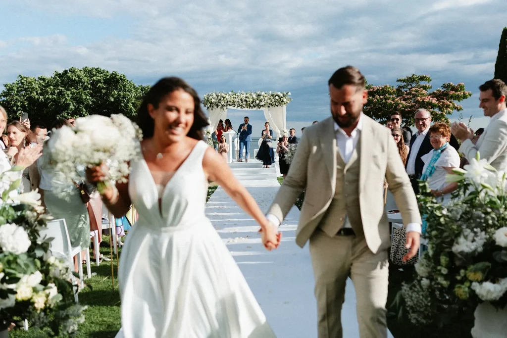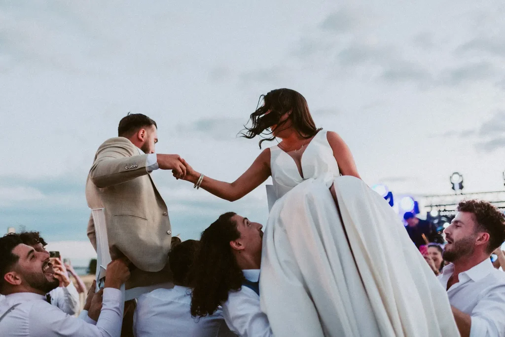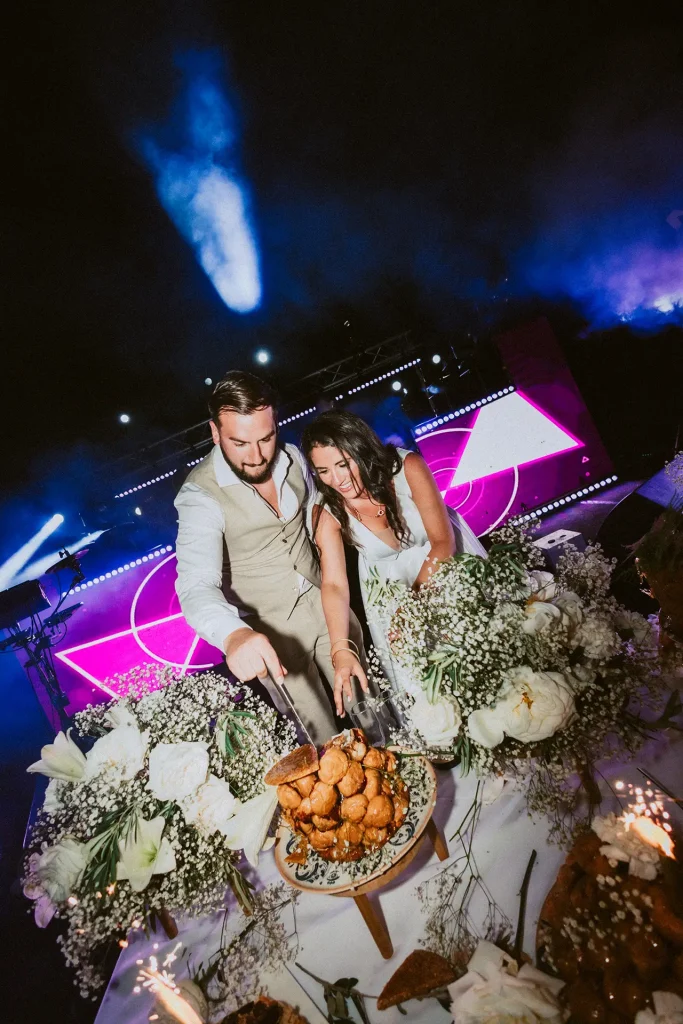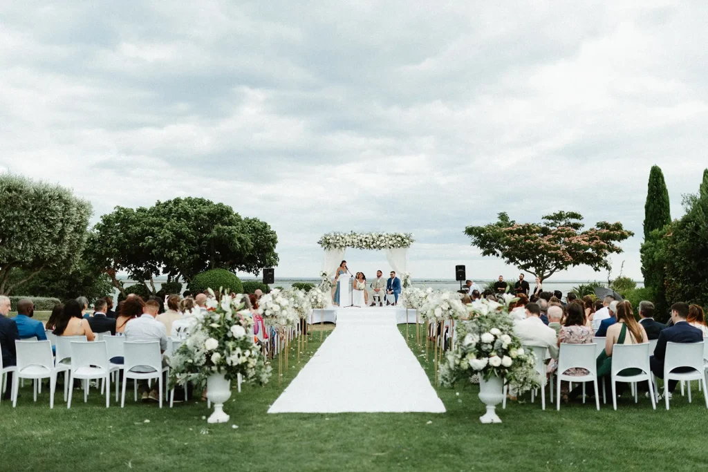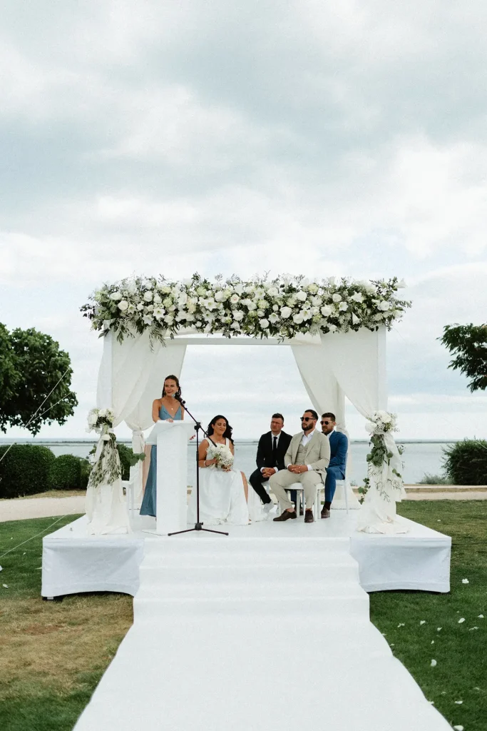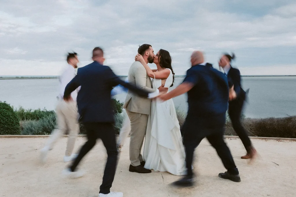 La journée a commencé avec une superbe cérémonie face à la mer, riche en traditions et surtout en émotions ! Si le soleil n’était pas parfaitement au rendez-vous, la journée n’en était pas moins radieuse. Ce qui m’a surtout marqué, c’est cette atmosphère de fête, de danse et de partage entre ces mariés et leurs proches. Dès le cocktail, l’ambiance était folle, à tel point que la mariée a décidé de découper sa robe de mariée pour danser plus librement ! Photographe de mariage à Montpellier, au domaine des Mourres, j’ai vraiment adoré cette journée chaleureuse dans un décor si exceptionnel !