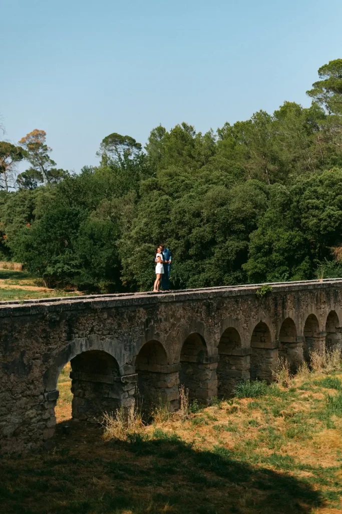 Pour ce mariage au Château d’Astros, l’ambiance était familiale et authentique, ponctuée de rires et de larmes. Nous avons réalisé des photos autour de l’aqueduc romain du domaine, un vestige du passé qu’il m’a rarement été possible de découvrir. Je trouve ça merveilleux de pouvoir ainsi préserver ce genre de constructions et d’autant plus privilégie de pouvoir se marier dans un tel lieu. C’est donc dans ce cadre naturel et discret que ces deux-là ont vécu ce moment de partage entourés de leurs proches.