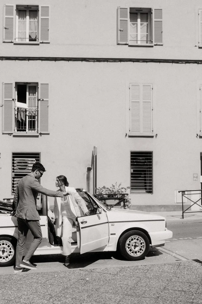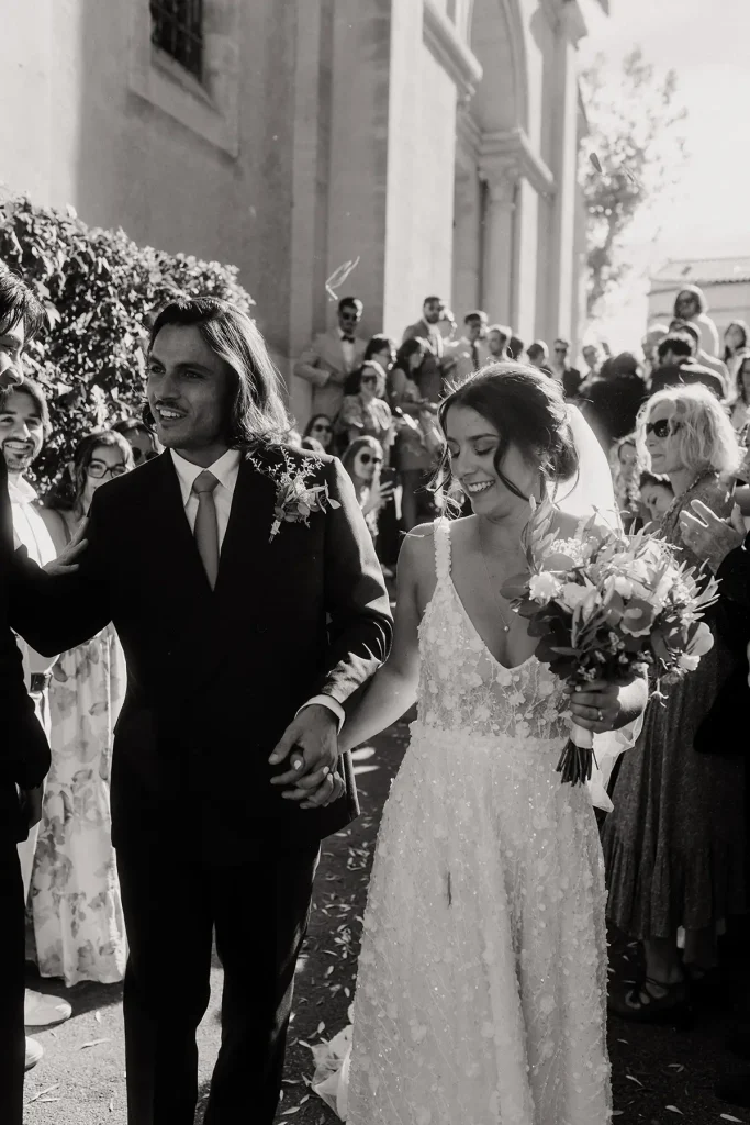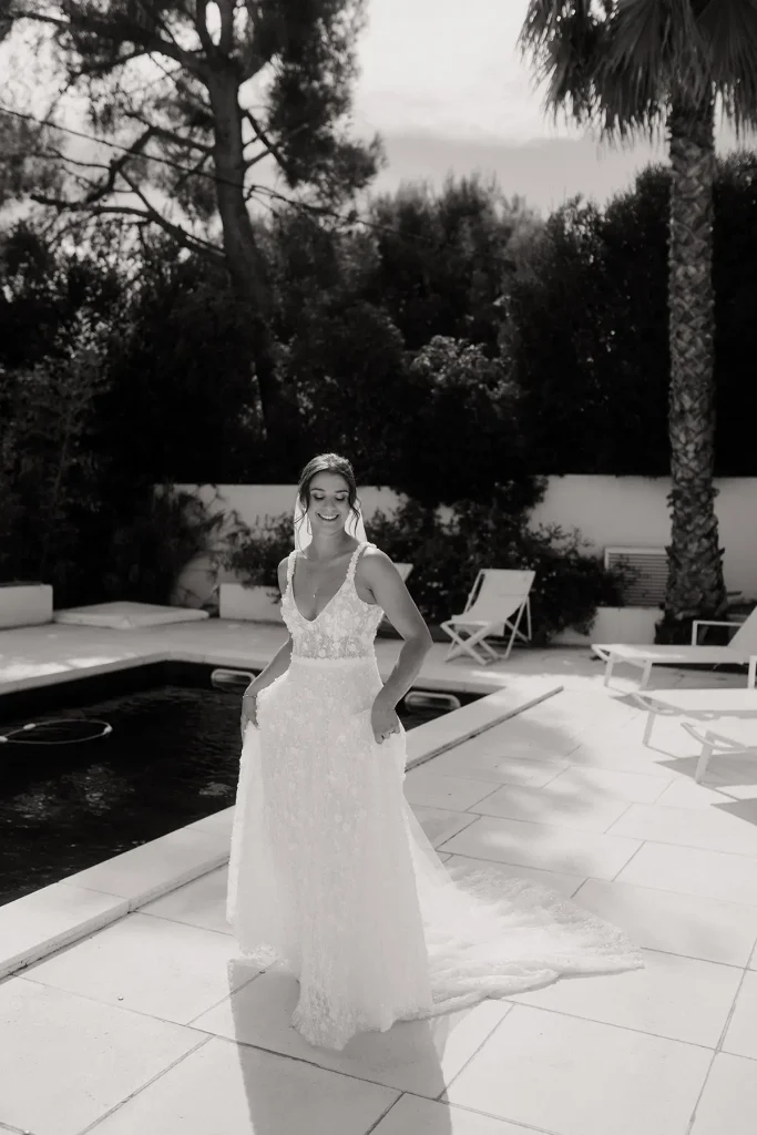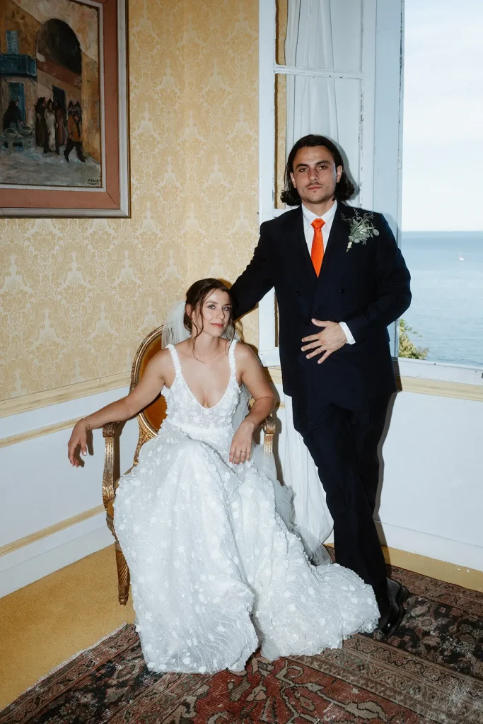 Ces jeunes mariés souhaitaient mettre en avant une ambiance festive, inspirée des années 80. Costumes croisés, golf vintage et polaroïds, j’ai capturé des souvenirs de cette journée lumineuse et chaleureuse au bord de l’eau. Leur réception était pleine d’énergie dans ce décor méditerranéeen et j’ai tout particulièrement aimé créer avec eux des photos un peu plus posées dans la chambre du domaine. J’ai adoré cette ambiance un peu vintage !