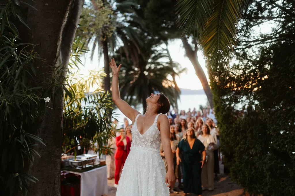 Le charme de ce domaine, c’est avant tout sa vue dégagée sur la mer. Rares sont les lieux à Toulon à bénéficier d’un tel emplacement. Photographe de mariage à Toulon, j’avais déjà photographié une union aux Pins Penchés. Mais photographier un mariage à la Résidence du Cap Brun c’est une chance que, chaque année, j’ai à plusieurs reprises. Je connais très bien le domaine, avec sa bastide nichée dans le quartier du Mourrillon. Son principal atout ? Une vue imprenable sur la mer Méditerranée et le charme de son architecture. Pour ce mariage à la Résidence du Cap Brun, en septembre, la lumière filtrait à travers les palmiers, pour une ambiance presque exotique.