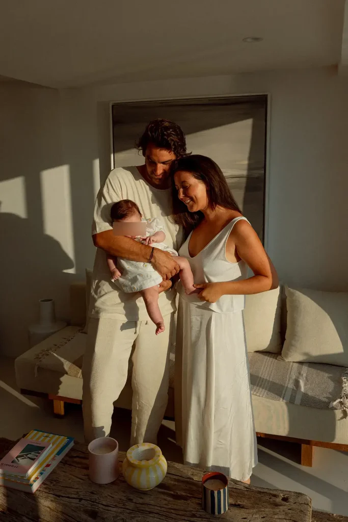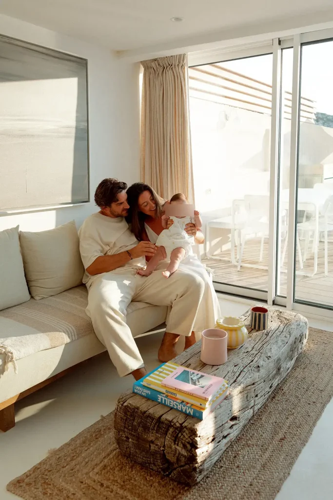 Quelques mois auparavant, je rencontrais ce couple pour réaliser leur séance grossesse aux Goudes. C’est au mois de juillet, quelques mois après la naissance de leur fille, que je les ai rerouvés pour cette séance bébé aux Goudes. Dans un appartement situé près du Tuba Club, on a fait quelques photos en intérieur, dans cette pièce baignée de lumière dorée. Ensuite, nous avons profité de la vue spectaculaire sur le Cap Croisette et Callelongue. J’adore retrouver des couples de cette façon et suivre des familles dans toutes les grandes étapes de leur vie ! C’était vraiment un très beau moment de les retrouver chez eux, avec leur bébé.