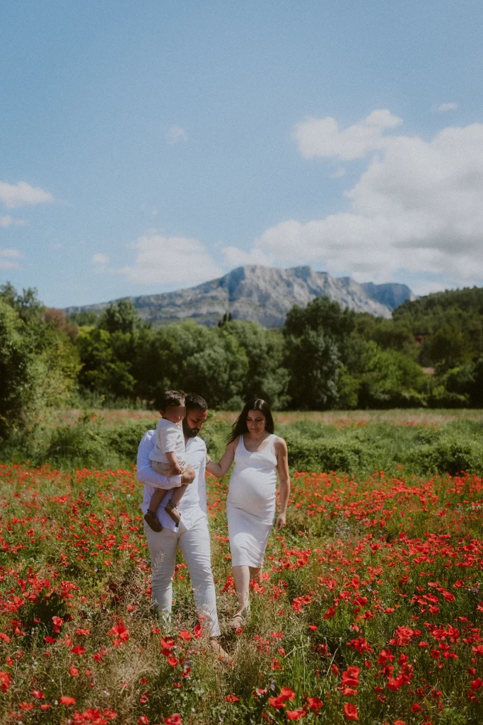 Tout a commencé avec ce couple là lors d’une première séance photo en bord de mer, quelques années auparavant. Depuis, je les ai accompagné lors du baptême de leur fils, puis à l’occasion d’une séance famille, jusqu’à cette séance photo maternité dans les coquelicots à Aix-en-Provence. Photographier l’évolution d’une famille et vous voir m’accorder votre confiance pour vos plus beaux souvenirs, c’est l’une des plus belles choses dans ce métier. De 2 personnes, à 3 puis à 5, je n’ai plus qu’une hâte : les retrouver lors de leur mariage pour continuer à créer des souvenirs des moments clés de leur vie !!